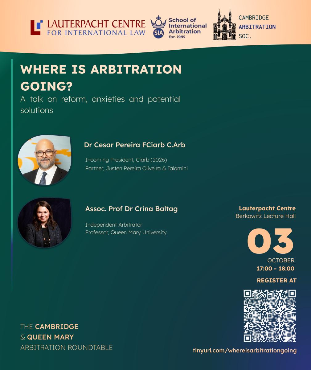 Cambridge University Arbitration Society (CUArb) was established in 2019 as a Registered Society at the University of Cambridge. It aims at promoting the study of international arbitration among students, academics, alumni, and law practitioners in the field. This lecture is part of the CUArb/LCIL Lecture series.